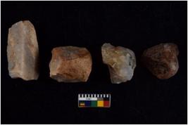 | Description / विवरण | There are n 4 flake cores. All of them are fully fluted flake cores without any trace of crested ridge flakes. Some of them have flat base and some have sharp edges. |