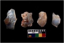 | Description / विवरण | There are n 4 cores; there are multidirectional irregular scar pattern on them. The reverse bulb and platform can be seen. |
