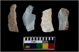 | Description / विवरण | There are n 4 utilized flake cores. There are multi directional irregular scar pattern on them. All of them are tapering at one end. |