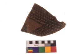 | Description / विवरण | Specimen of potsherd with black decorative geometric Net Pattern painting. |