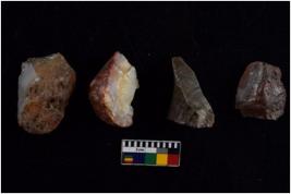 | Description / विवरण | There are n 4 flake cores. All of them are fully fluted flake cores without any trace of crested ridge flakes. Some of them have flat base and some have sharp edges. |