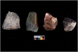 | Description / विवरण | There are n 4 flake cores. All of them are fully fluted flake cores without any trace of crested ridge flakes. They are tapering at one end and some have blunted edges. |
