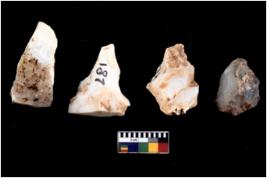 | Description / विवरण | There are n 4 flake cores. All of them are fully fluted flake cores without any trace of crested ridge flakes. Some of them have flat base and some have sharp edges. |