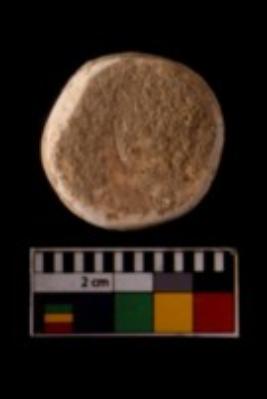 | Description / विवरण | A circular weight of kaolinite; it has a rough surface. |
