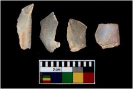 | Description / विवरण | There are n 4 utilized flake cores. There are multi directional irregular scar pattern on them. Two are tapering at one end and two have blunted edges. |
