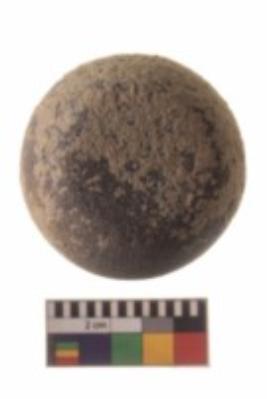 | Description / विवरण | A spherical weight of basalt; it has a smooth surface with encrustations. |