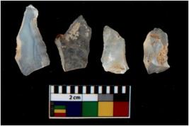 | Description / विवरण | There are n 4 utilized flake cores. There are multi directional irregular scar pattern on them. All of them are tapering at one end. |