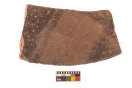 | Description / विवरण | Specimen of Potsherd black on red painted pottery. It is fine fabric in sharp contrast with painted design are executed in black pigment. |