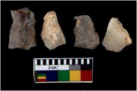 | Description / विवरण | There are n 4 utilized flake cores. There are multi directional irregular scar pattern on them. One is tapering at one end and three have blunted edges. |