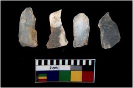 | Description / विवरण | There are n 4 utilized flake cores. There are multi directional irregular scar pattern on them. All of them are tapering at one end. |