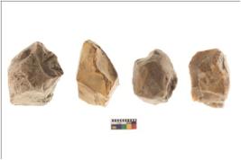 | Description / विवरण | There are n-4 of utilized flake cores. There are multidirectional irregular dominant scar pattern on both dorsal and ventral face of the cores. |