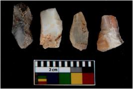 | Description / विवरण | There are n 4 utilized flake cores. There are multi directional irregular scar pattern on them. All of them are tapering at one end. |