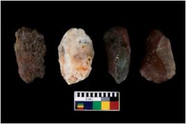 | Description / विवरण | There are n 4 flake cores. All of them are fully fluted flake cores without any trace of crested ridge flakes. Some are tapering at one end and some have blunted edges. |