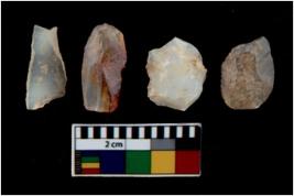 | Description / विवरण | There are n 4 utilized flake cores. There are multi directional irregular scar pattern on them. Two are tapering at one end and two have blunted edges. |