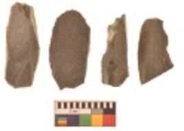 | Description / विवरण | There are n 4 utilized flakes. There are multi directional irregular scar pattern on both dorsal and ventral face of the flakes. Three are tapering at one end and one has sharp edge. |