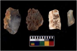 | Description / विवरण | There are n 4 cores; there are multidirectional irregular scar pattern on them. The reverse bulb and platform can be seen. |