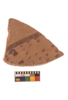 | Description / विवरण | Specimen of Potsherd black on red painted pottery. It is fine fabric in sharp contrast with painted design are executed in black pigment. |
