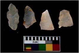 | Description / विवरण | There are n 4 utilized flake cores. There are multi directional irregular scar pattern on them. All of them are tapering at one end. |