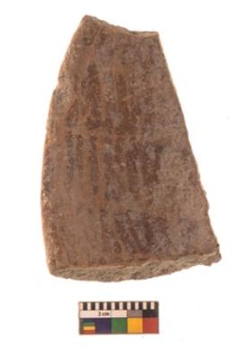 | Description / विवरण | Specimen of Potsherd with black decorative wavy thickline painting. |