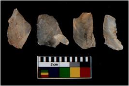 | Description / विवरण | There are n 4 utilized flake cores. There are multi directional irregular scar pattern on them. All of them are tapering at one end. |