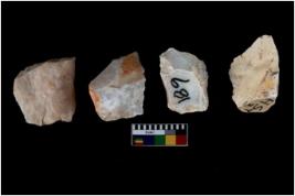 | Description / विवरण | There are n-4 of utilized flake cores. There are multidirectional irregular dominant scar pattern on both dorsal and ventral face of the cores. |