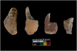 | Description / विवरण | There are n-4 of utilized flake cores. There are multidirectional irregular dominant scar pattern on both dorsal and ventral face of the cores. |