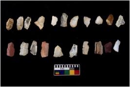 | Description / विवरण | Specimen of flakes tool with prominent flaking marks. It made up of a short flakes with sides trimmed. |