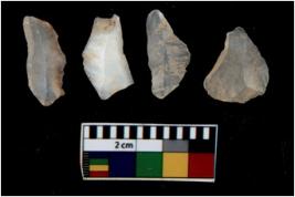 | Description / विवरण | There are n 4 utilized flake cores. There are multi directional irregular scar pattern on them. Two are tapering at one end and two have blunted edges. |