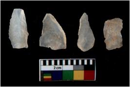 | Description / विवरण | There are n 4 utilized flake cores. There are multi directional irregular scar pattern on them. All of them are tapering at one end. |