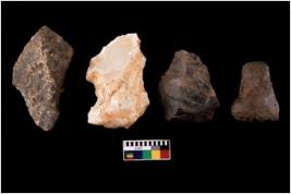 | Description / विवरण | There are n 4 flake cores. All of them are fully fluted flake cores without any trace of crested ridge flakes. Some are tapering at one end and some have blunted edges. |