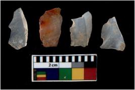 | Description / विवरण | There are n 4 utilized flake cores. There are multi directional irregular scar pattern on them. All of them are tapering at one end. |
