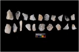 | Description / विवरण | There are n 20 flakes tool; there are multidirectional irregular scar pattern on them; made of short flakes and few have tapering edges. |