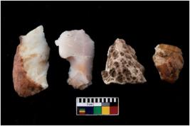 | Description / विवरण | There are n 4 flake cores. All of them are fully fluted flake cores without any trace of crested ridge flakes. Some are tapering at one end and some have blunted edges. |