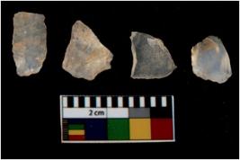| Description / विवरण | There are n 4 utilized flake cores. There are multi directional irregular scar pattern on them. One has sharp edge and three have blunted edges. |