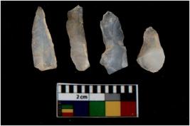 | Description / विवरण | There are n 4 utilized flake cores. There are multi directional irregular scar pattern on them. All of them are tapering at one end. |