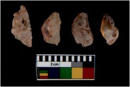 | Description / विवरण | There are n 4 utilized flake cores. There are multi directional irregular scar pattern on them. Three are tapering at one end and one has sharp edge. |