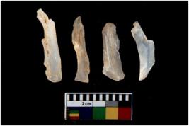 | Description / विवरण | There are n 4 utilized flake cores. There are multi directional irregular scar pattern on them. All of them are tapering at one end. |