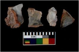 | Description / विवरण | There are n 4 utilized flake cores. There are multi directional irregular scar pattern on them. One is tapering at one end and three have blunted edges. |