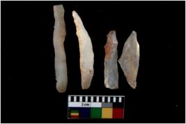 | Description / विवरण | There are n 4 utilized flake cores. There are multi directional irregular scar pattern on them. All of them are tapering at one end. |
