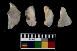 | Description / विवरण | There are n 4 utilized flake cores. There are multi directional irregular scar pattern on them. Three are tapering at one end and one has sharp edge. |