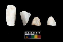 | Description / विवरण | There are n-4 of utilized flake cores. There are multidirectional irregular dominant scar pattern on both dorsal and ventral face of the cores. |
