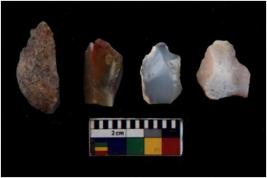 | Description / विवरण | There are n 4 of utilized worked cores and show multidirectional irregular scar pattern on both dorsal and ventral sides. |