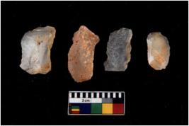 | Description / विवरण | There are n 4 cores; there are multidirectional irregular scar pattern on them. The flake scars are seen on all sides. |