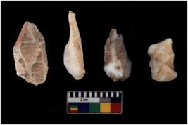 | Description / विवरण | There are n 4 of utilized worked cores and show scar pattern. They have sharp edges and two have broken tip. |