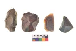 | Description / विवरण | There are n 4 utilized flake cores. There are multidirectional irregular dominant scar pattern on both dorsal and ventral face of the flake cores. Three have blunted edges and one has round edge. |