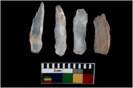 | Description / विवरण | There are n 4 utilized flake cores. There are multi directional irregular scar pattern on them. Three are tapering at one end and one has sharp edge. |
