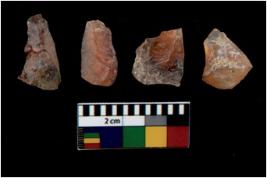 | Description / विवरण | There are n 4 utilized flake cores. There are multi directional irregular scar pattern on them. Two are tapering at one end and two have blunted edges. |