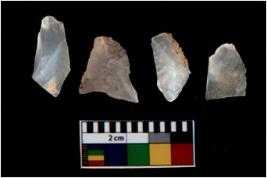 | Description / विवरण | There are n 4 utilized flake cores. There are multi directional irregular scar pattern on them. Two are tapering at one end and two have blunted edges. |