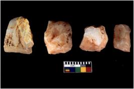 | Description / विवरण | There are n 4 flake cores. All of them are fully fluted flake cores without any trace of crested ridge flakes. Some have flat base while few have round edges. |