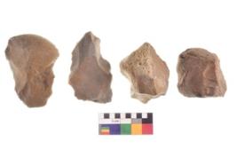 | Description / विवरण | There are n 4 utilized flake cores. There are multidirectional irregular dominant scar pattern on both dorsal and ventral face of the flake cores. Two are tapering at one end and two have blunted edges. |